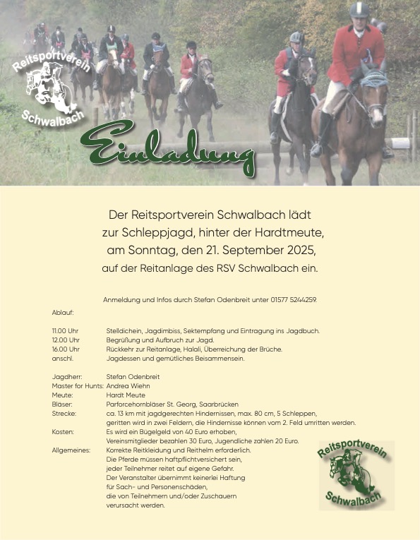 Die Veranstalter weisen ausdrücklich auf die Gefährlichkeit des Reitens im Gelände hin. Die Haftung der gesetzlichen Vertreter und der Erfüllungsgehilfen des Veranstalters für Schäden aus der Verletzung des Lebens, des Körpers und der Gesundheit sowie die Haftung des Veranstalters, seiner Vertreter und seiner Erfüllungsgehilfen für sonstige Schäden ist ausgeschlossen, soweit die Haftung auf einfacher Fahrlässigkeit beruht.